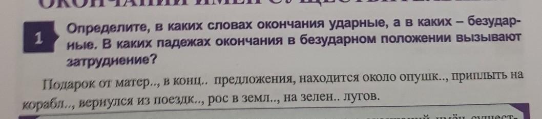 Подарок от матери, в конце предложения, находится около опушки, приплыть на корабле, вернулся из поездки, рос в земле, на зелени лугов.