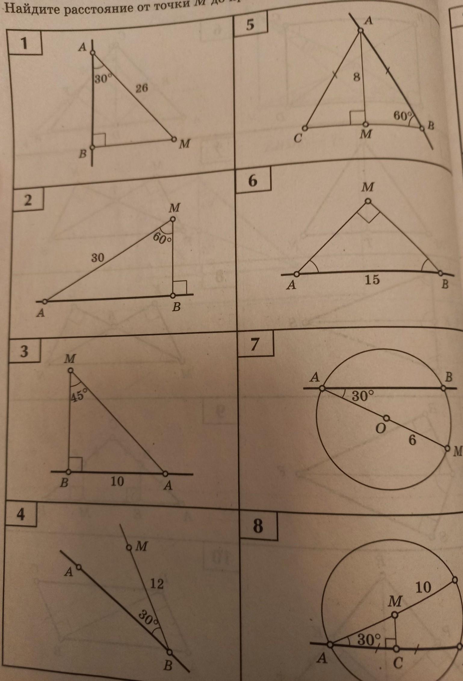 4) опустим перпендикуляр МС на прямую ВА, треугольник ВСМ прямоугольный и угол В=30° -> МС=МВ÷2=12÷2=6