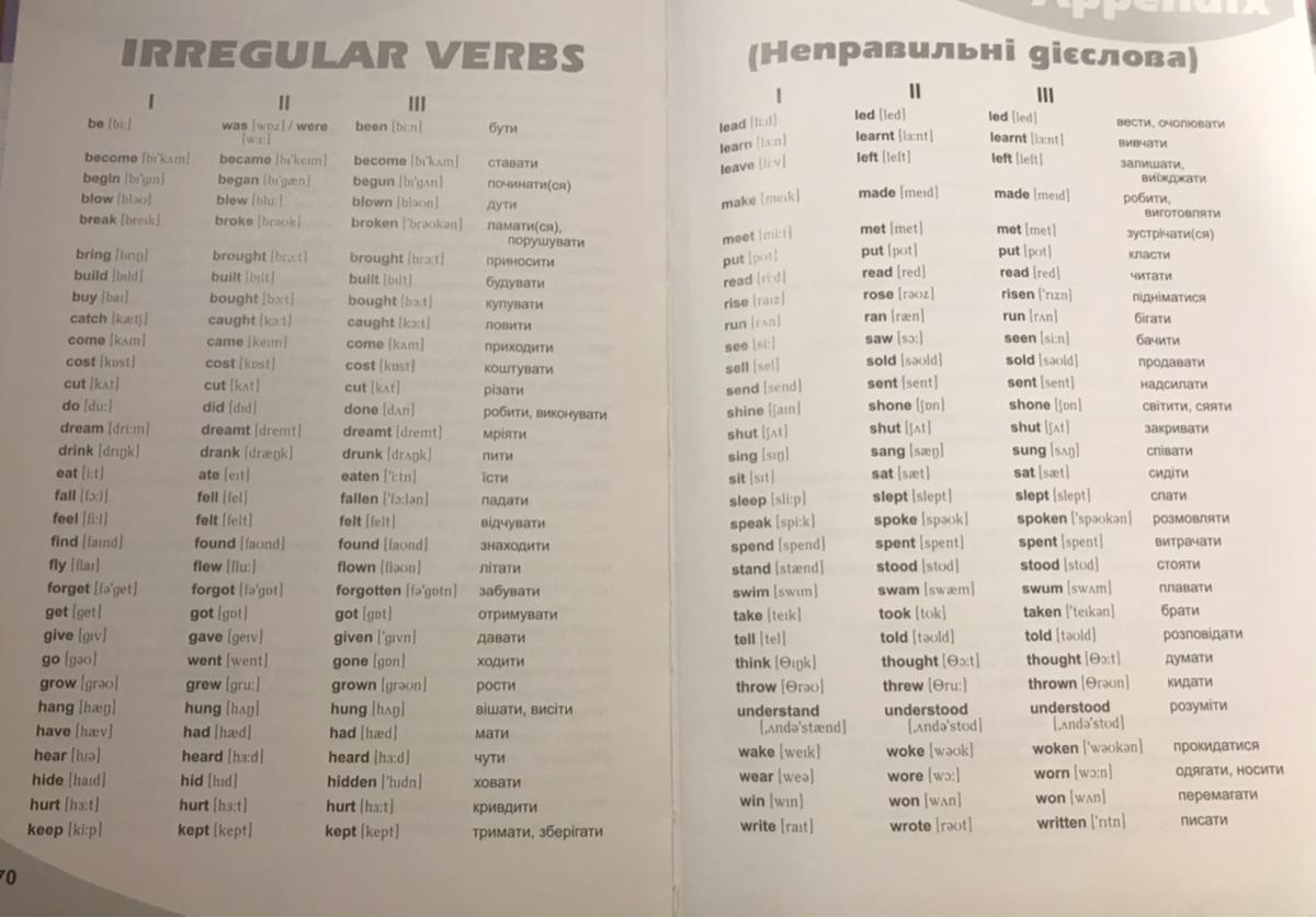если понимаешь украинский , то вот фотка неправильных глаголов