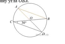 В окружности с центром в точке О проведены диаметры AD и BC, угол OCD равен 30°. Найдите величину угла OВА.