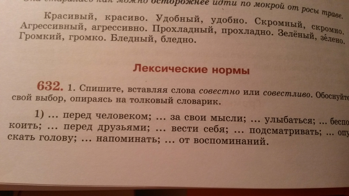 Совестливо перед человеком, совестливо за свои мысли, совестно улыбаться,совестливо беспокоить, совестно перед друзьями,совестливо вести себя,совестно подсматривать, совестно опускать голову, совестно напомнить,совестно от воспоминаний.