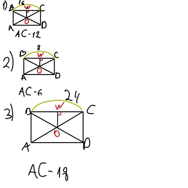диагональ АС равна 12,но в точке пересечения она делится пополам=АО равно 6