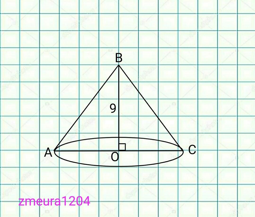 Знайти бічну поверхню та об"єм конуса, осьовий переріз якого - проавильний трикутник з висотою 9см.