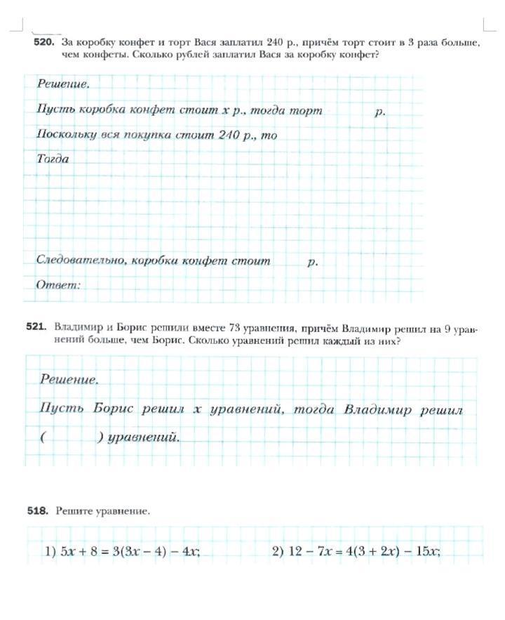 520.Если коробка конфет стоит х руб,но торт в три раза больше,то торт стоит 3х.