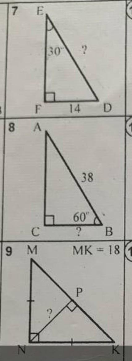 напротив угла в 30 градусов в прямоугольных треугольниках лежит сторона, которая вдвое меньше гипотенузы, т.о.