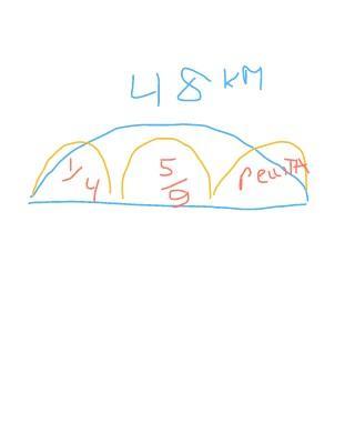 Туристы за три дня прошли 48 км. В первый день они прошли 1/4 всего пути, а во второй 5/9 остатка сколько километров они прошли в третий день МОЖНО ЧЕРТЕЖ