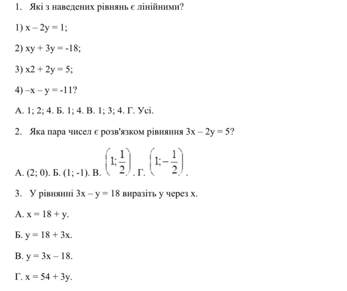1. Б) 1; 4, т.к. уравнение линейно, если оно имеет вид у=ах+b; где a и b - некоторые числа.
