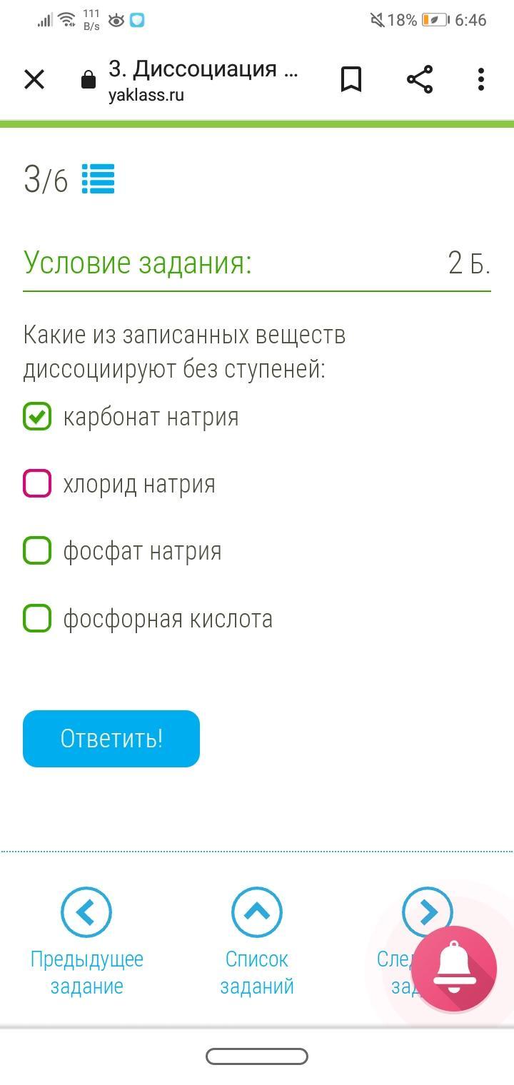 хлорид натрия одноосновная соль, диссоциирует без ступеней