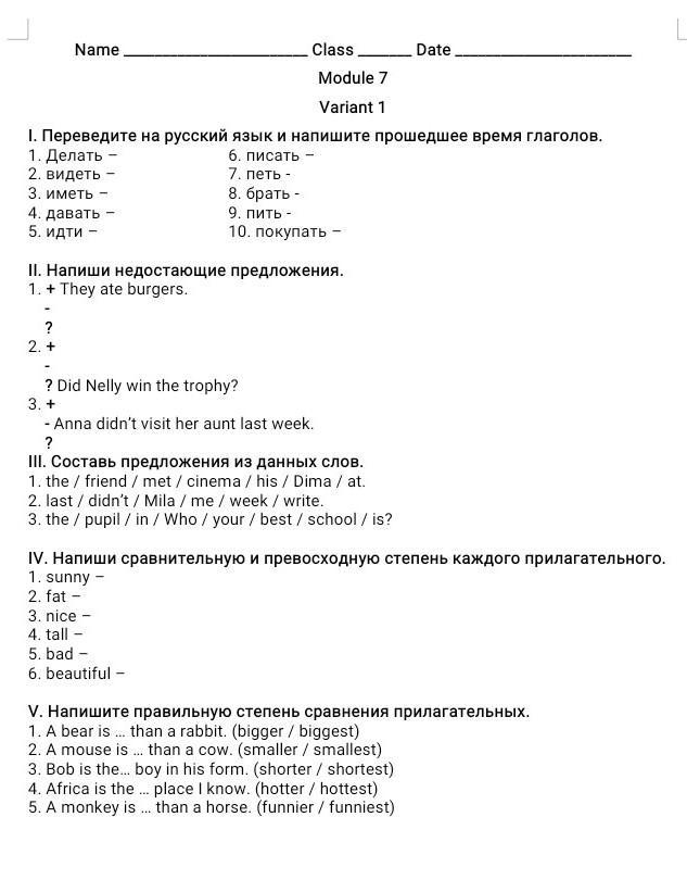 3. (+) Anna visited her aunt last week