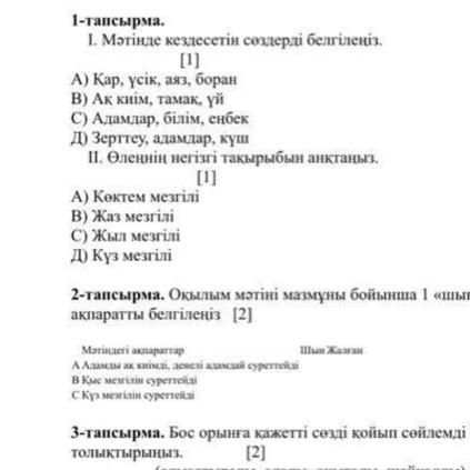 1) а,2)жыл мезгілі,2-2)шын-а),жалған-в),с).