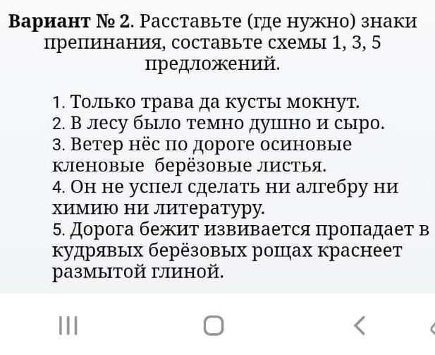Вариант № 2. Расставьте (где нужно) знаки препинания, составьте схемы 1, 3, 5 предложений.