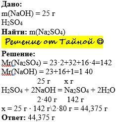 Вычислите массу соли, образовавшейся при взаимодействии 25г гидроксида натрия с серной кислотой