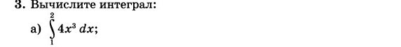integral[1;2]4x^3dx=x^4[1;2]=2^4-1^4=16-1=15