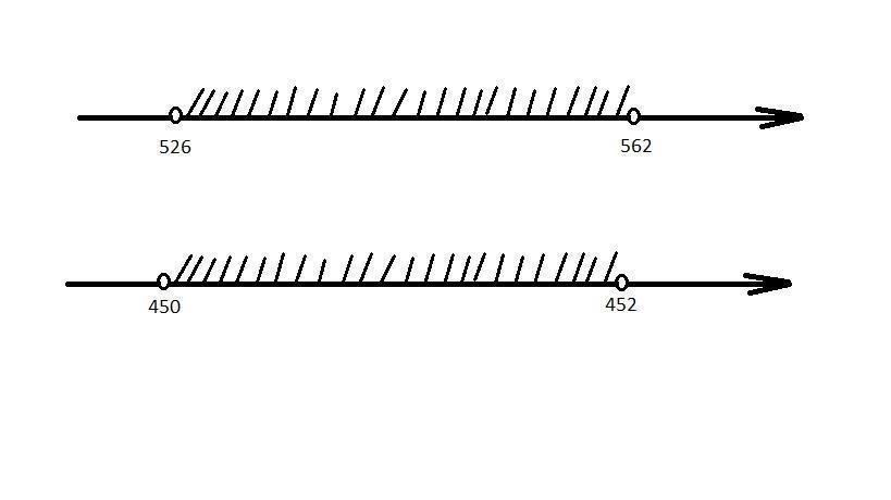 "x больше, чем 526, и меньше, чем 562".