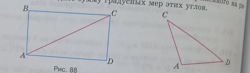 - Измерьте каждый угол треугольника ACD, изображённого на ри- сунке 89. Найдите сумму градусных мер этих углов.