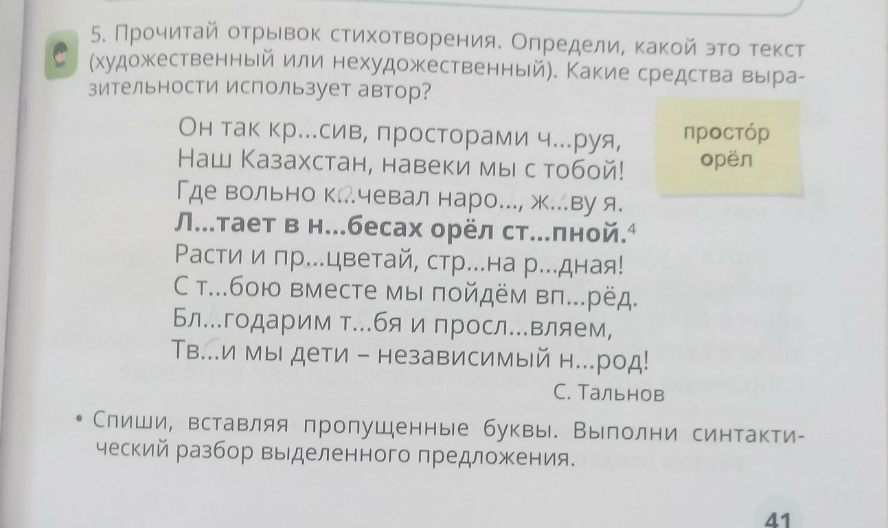 5. Прочитай отрывок стихотворения. Определи, какой это текст(художественный или нехудожественный). Какие средства выра-