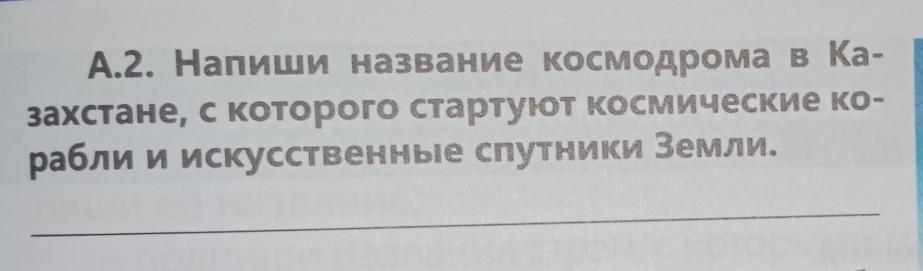 А.2. Напиши название космодрома в Казахстане, с которого стартуют космические корабли и искусственные спутники Земли.