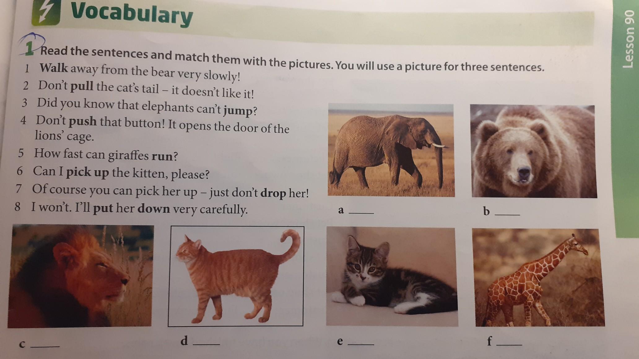 1 Read the sentences and match them with the pictures. You will use a picture for three sentences.