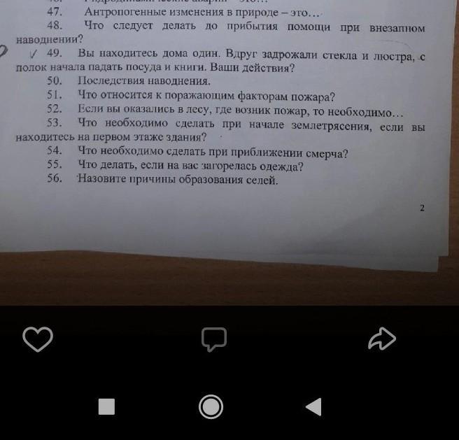 49) желательно выбежать на улицу но не стоять около деревьев но если вы находитесь не в частном доме то встаньте между дверным проёмом или спрястесь под стол