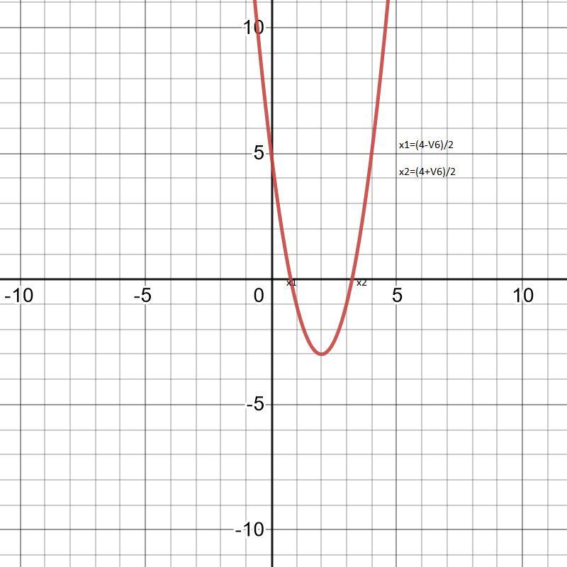 кординаты:((4-√6)2 ; 0) u (4+√6)/2; 0)