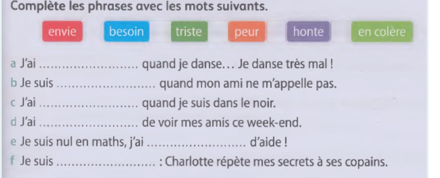 b.Je suis TRISTE quand mon ami ne m’appelle pas.