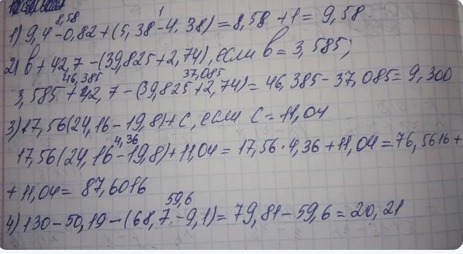 2) б + 42,7 - (39,825 + 2,74), если б = 3,585 3) 17,56 - (24,16 - 19,8) + с, если с = 11,04