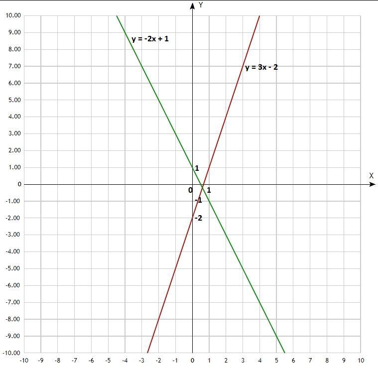 у = 3х - 2; у = -2х + 1;