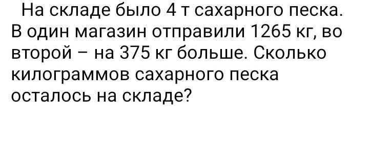 так как 4 тонны было это 4000 кг так ведь? 4000-1265=2735,теперь 1265+375=1640 и наконец 2735-1640=1095
