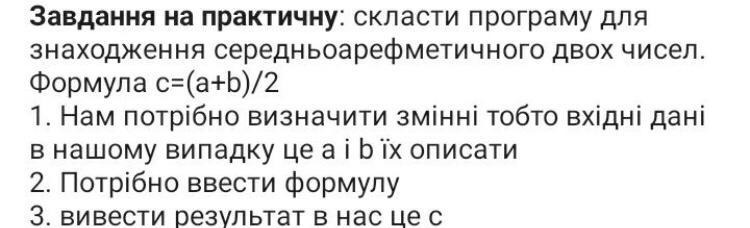 print('середнє арифметичне: ', c )
