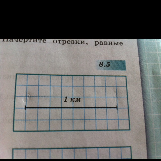 Отрезок изображает 1 км. Начертите отрезки,соответствующие 3/8 км, 9/8 км, 3/4 км, 7/4 км.