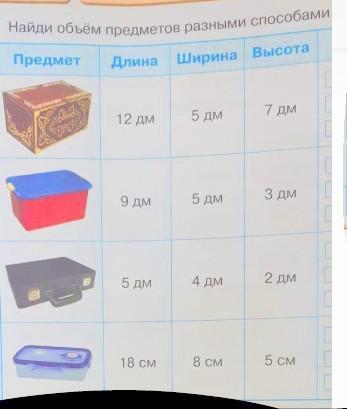 Объем прямоугольного параллелепипеда равен произведению длины на ширину и на высоту - соответственно, в данных случаях объем равен:
