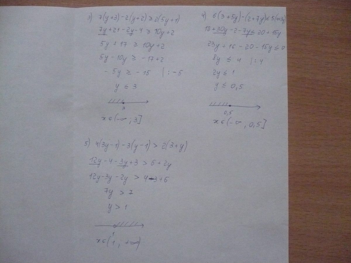 4)6(3+5у)-(2+7у)< или равно 5(4+3у)