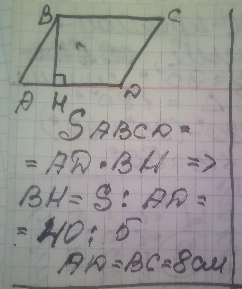 Площа паралелограма дорівнює 40 см 2 . Знайти його сторону, якщо