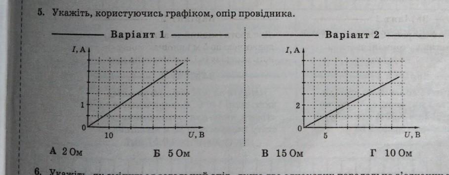 5. Укажіть, користуючись графіком, опір провідника. Варіант 1 І, А1 І, А o 0 10 U, В