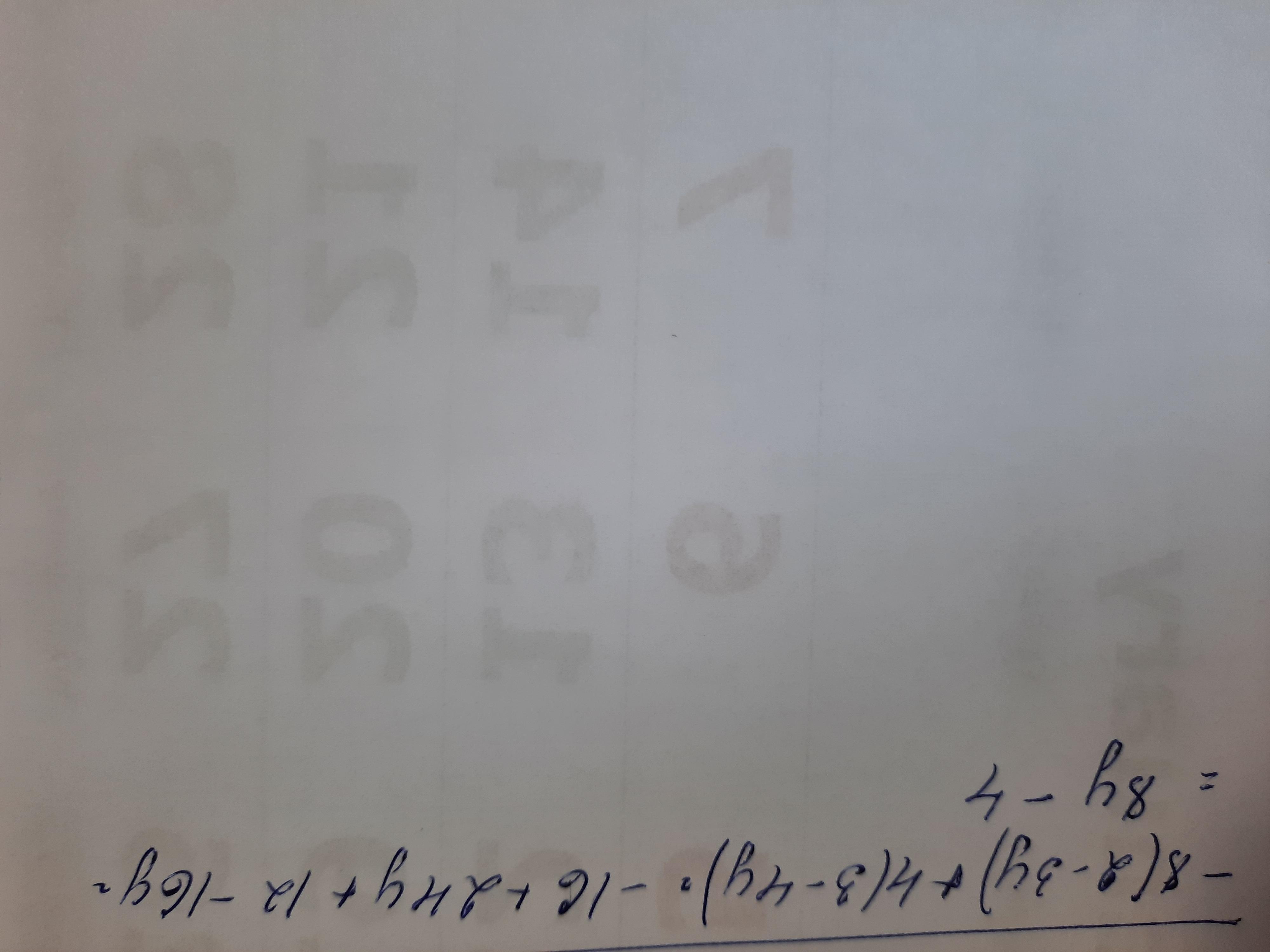 -8(2-3у)+4(3-4у) = -16 + 24y + 12 - 16y = 8y - 4 (не обязательно, но можно написать еще, что 8y - 4 = 4*(2y-1)