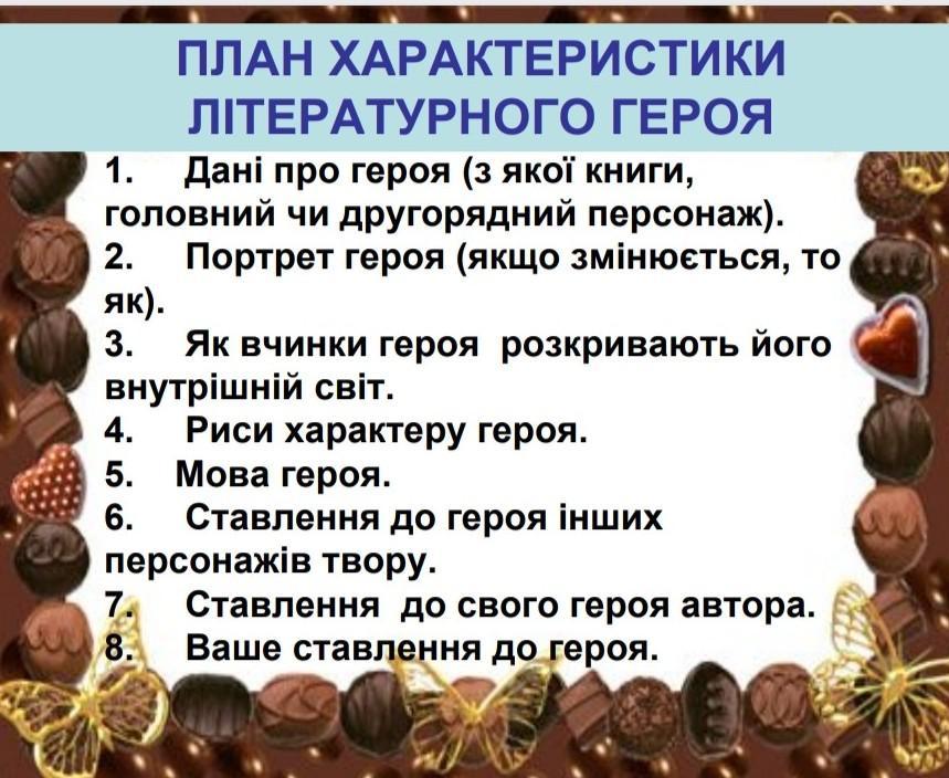 План характеристики героя Чарлі з книжки "Чарлі і шоколадна фабрика "