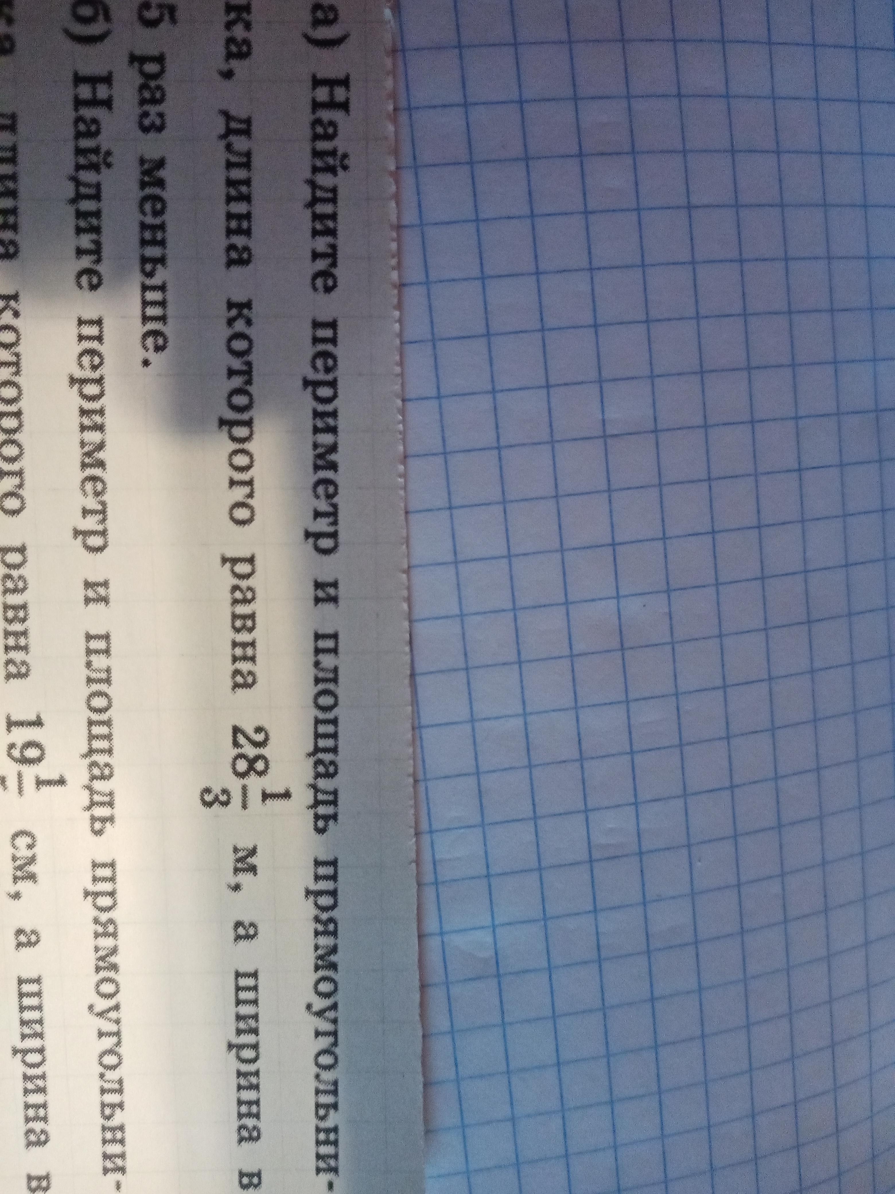 Найдите периметр и площадь прямоугольника, длина которого равна 28 целых 1/3 м, а ширина в 5 раз меньше.