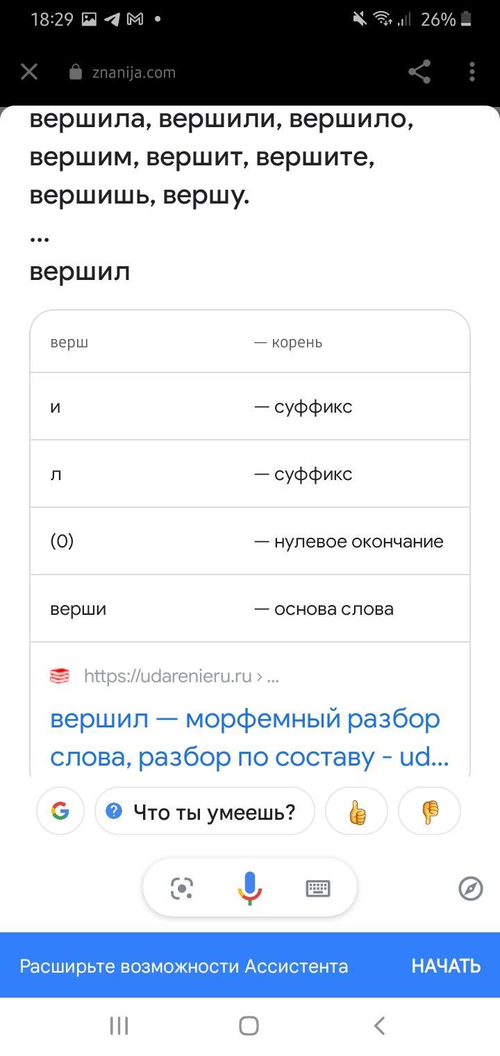 морфологический разбор слова ВЕРШИЛ