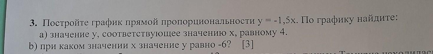 ПОМОГИТЕ ПОЖАЛУЙСТА ДАЮ 30Б ЕСЛИ НОРМАЛЬНО ОТВЕТИТЕ ОТМЕЧЮ ОТВЕТ САМЫМ ЛУЧШИМ!Постройте график прямой пропорциональности у = -1,5х. Го графику найдите: а) значение у, соответствующее значению х, равному 4. b) при каком значении х значение у равно