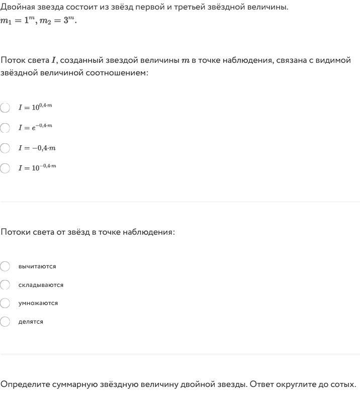 Объяснение: 1) Поток света связан с видимой звездной величиной соотношением I = 10^-4m (последнее выражение)