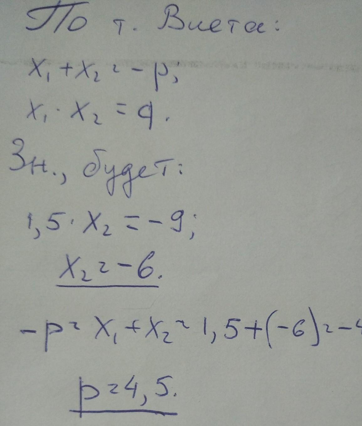 один з коренів квадратного рівняння x² +px-9=0 дорівнює 1,5 знайдіть значення p і другий корінь рівняння
