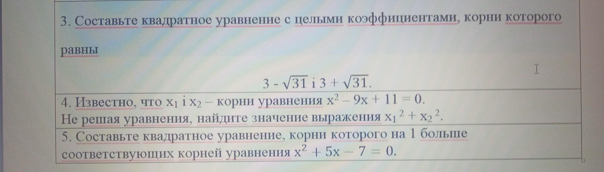 3. Составьте квадратное уравнение с целыми коэффициентами, корни которого равны