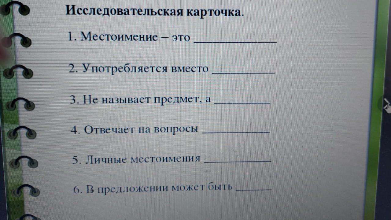 1. Местоимение это 2. Употребляется вместо 3. Не называет предмет, а 4. Отвечает на вопросы 5. Личные местоимения 6. В предложении может быть