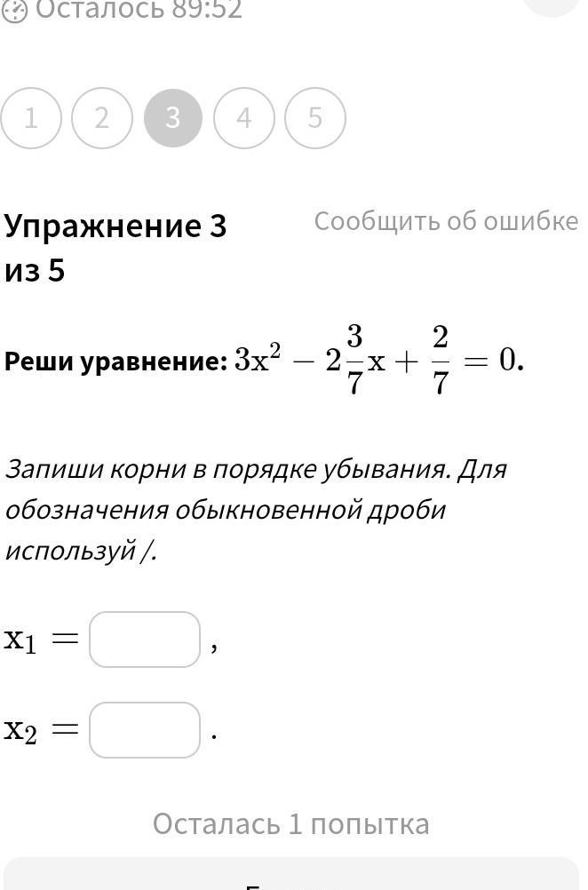 3x² - 2 3/7 x + 2/7 = 0; │X 7