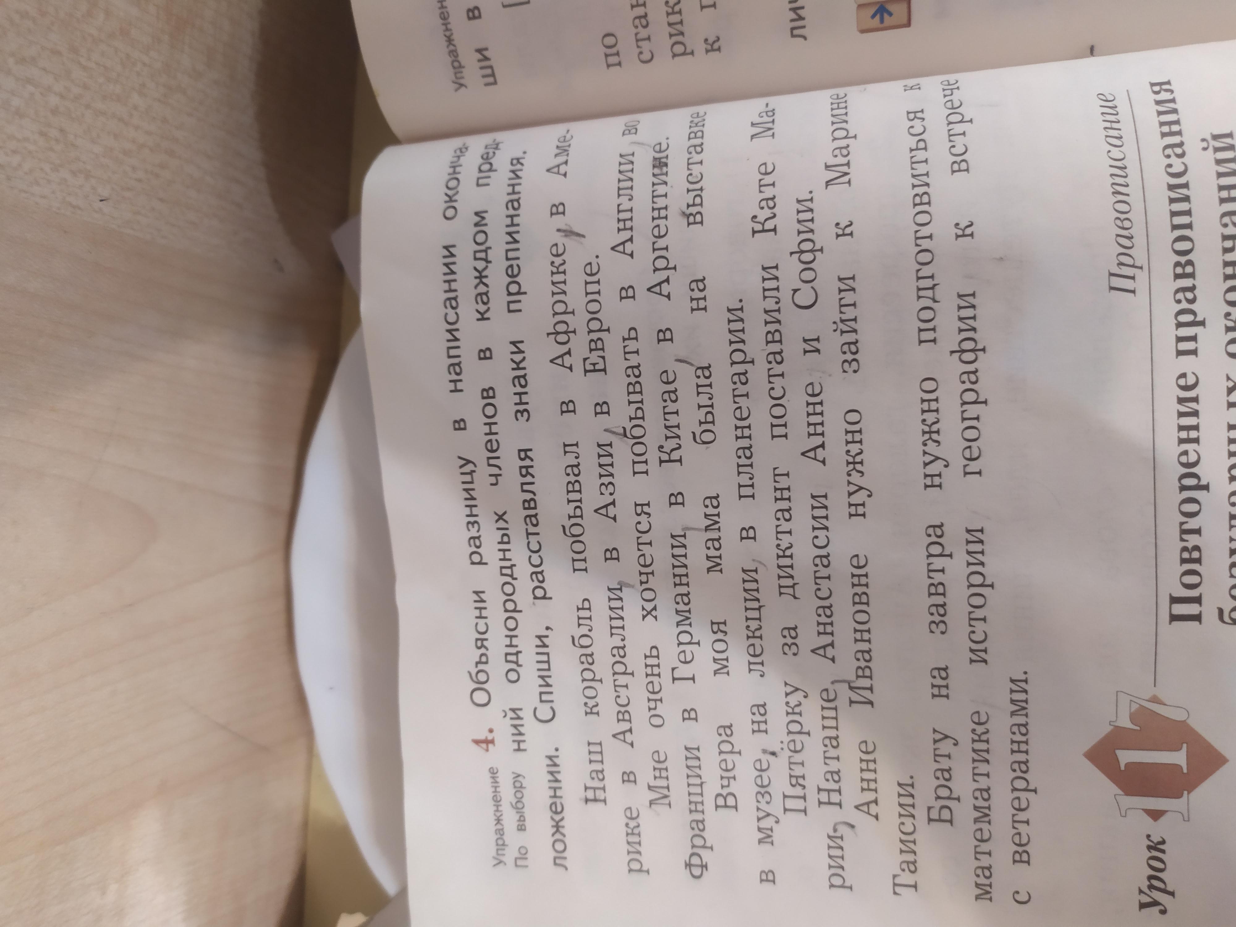 Пятёрку за диктант поставили Кате, Марии, Наташе, Анастасии, Анне и Софии.