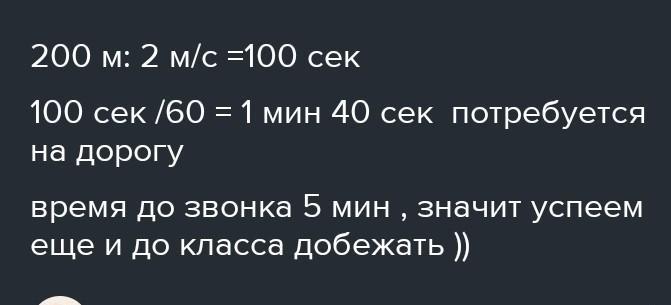 200 м =2 м \в секунде =100сек 100сек \60 м=1 мин 40 сек