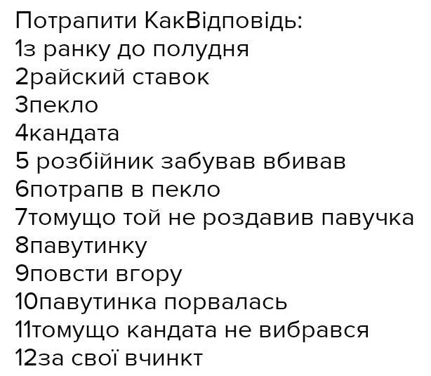 12. Павутинка обірвалася не від ваги багатьох грішників, а...?