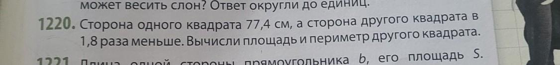 77,4 : 1,8 =43 (см) сторона другого квадрата