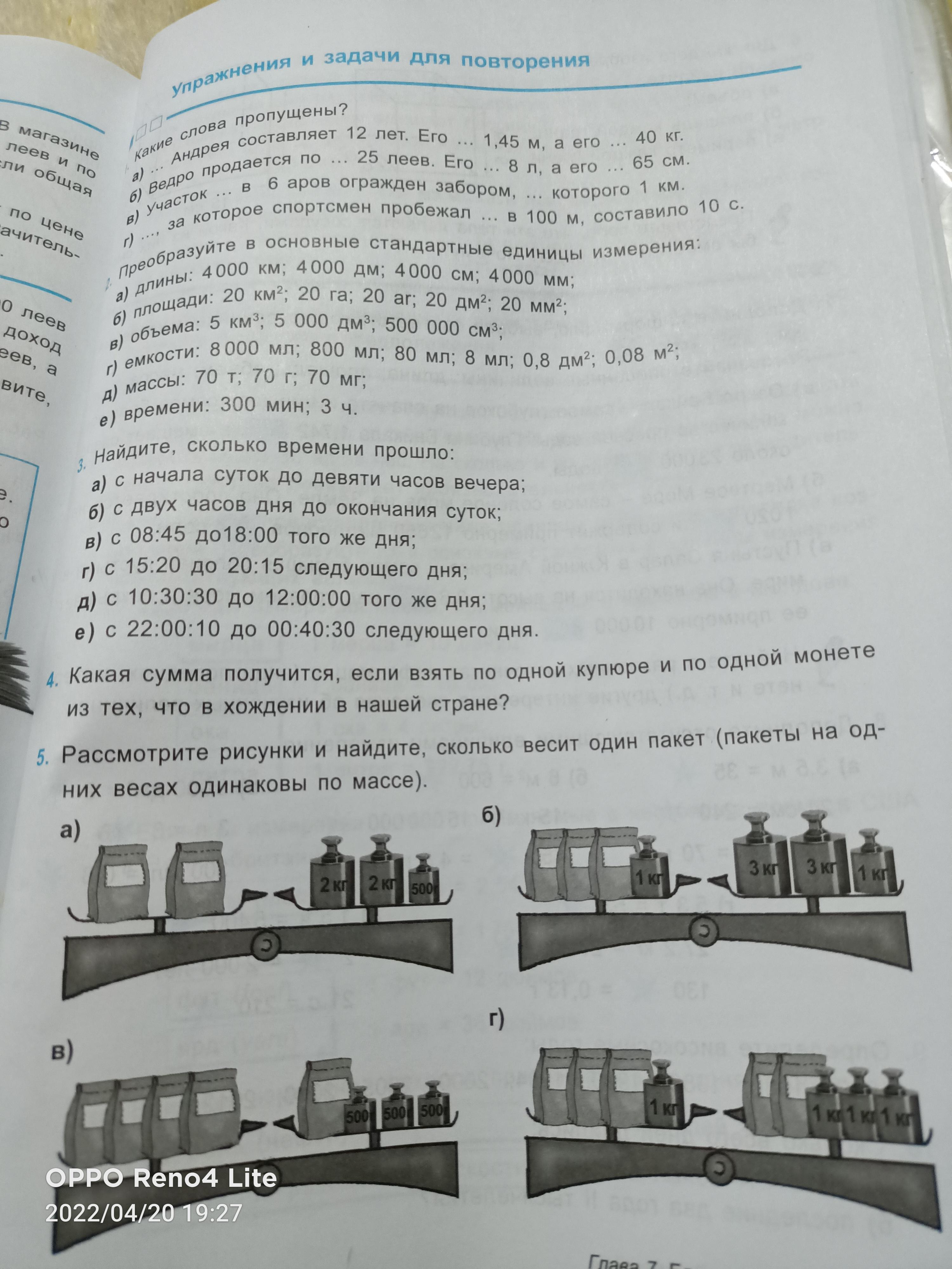 г)3 пакета + 1 кг = 2 пакета + 3 кг