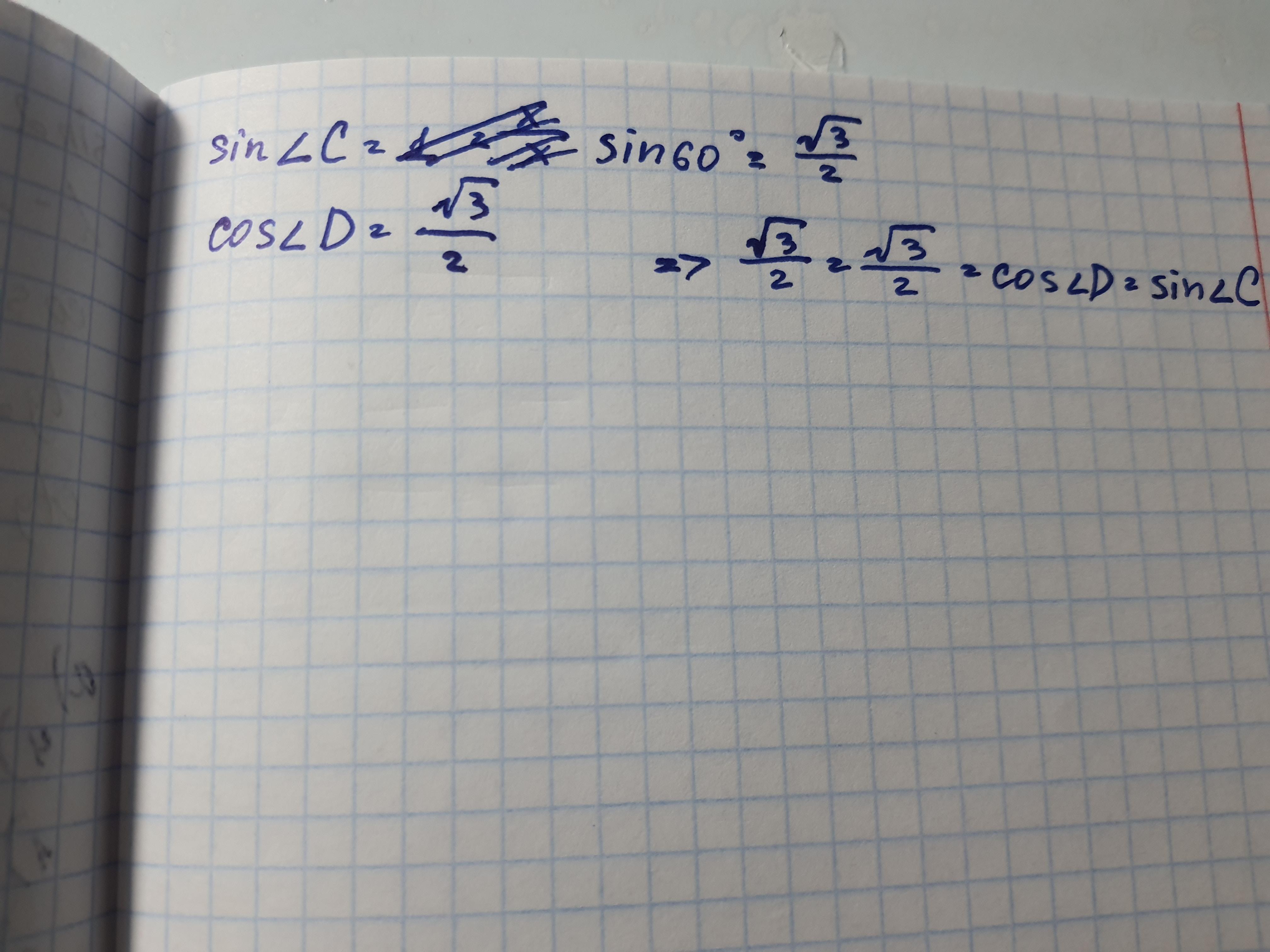 ΔABC равносторонний. ΔEFD – прямоугольный треугольник. Докажите, что если ∠E = 90º, FD = 2, FE = 1, то sin ∠C = cos ∠D.